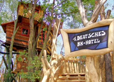 Schlafen zwischen Baumkronen: In Zentendorf steht Deutschlands erstes Baumhaushotel. Die acht windschiefen Baumhäuser sind komfortabel ausgestattet, haben Küchenzeile, Bad mit Dusche – und besonders schöne Namen: „Fionas Luftschloss“, „Thor Alfson Astpalast“ oder „Modelpfutzens Wipfelgipfel“. www.kulturinsel.de
