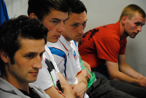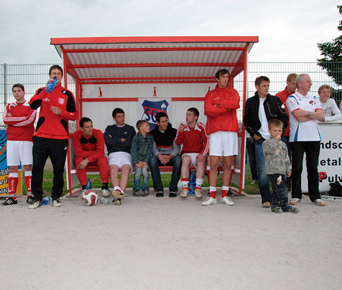 Halbzeit. Orzel Zlinice führen mit zwei Toren. Schweißnasse Trikots, errötete Wangen, angestrengte Blicke in der sorbischen Kabine. Die Luft ist feucht. „Ein gutes Spiel“, ermutigt Rietschel auf deutsch und erläutert die Strategie. Wenn es um Fußball geht, muss er sich manchmal mit der deutschen Sprache behelfen, einige Fachbegriffe gibt es im Sorbischen nicht. Leise flüstert er Nummer 9, Spitzname Günther Netzer, letzte Anweisungen ins Ohr. Und dann an alle: „Wir müssen jetzt kämpfen!“