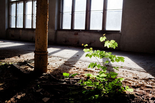 Das Haus erinnert an eine Welt, in der sich die Menschen seit langem von dannen gemacht haben. Leere überall, Geruch von Staub und Schimmel. Im ersten Stock türmen sich die Trümmer eines Ofens. Nebenan sprießt aus dem aufgebrochenen Kachelboden eine Pflanze. Schmutz auf den Fensterscheiben lässt von der Sommersonne nur schummriges Licht übrig. Seit 1995 bewohnen nur noch Mäuse und Ungeziefer dieses Haus in der Berliner Straße 42 nahe dem Görlitzer Bahnhof.